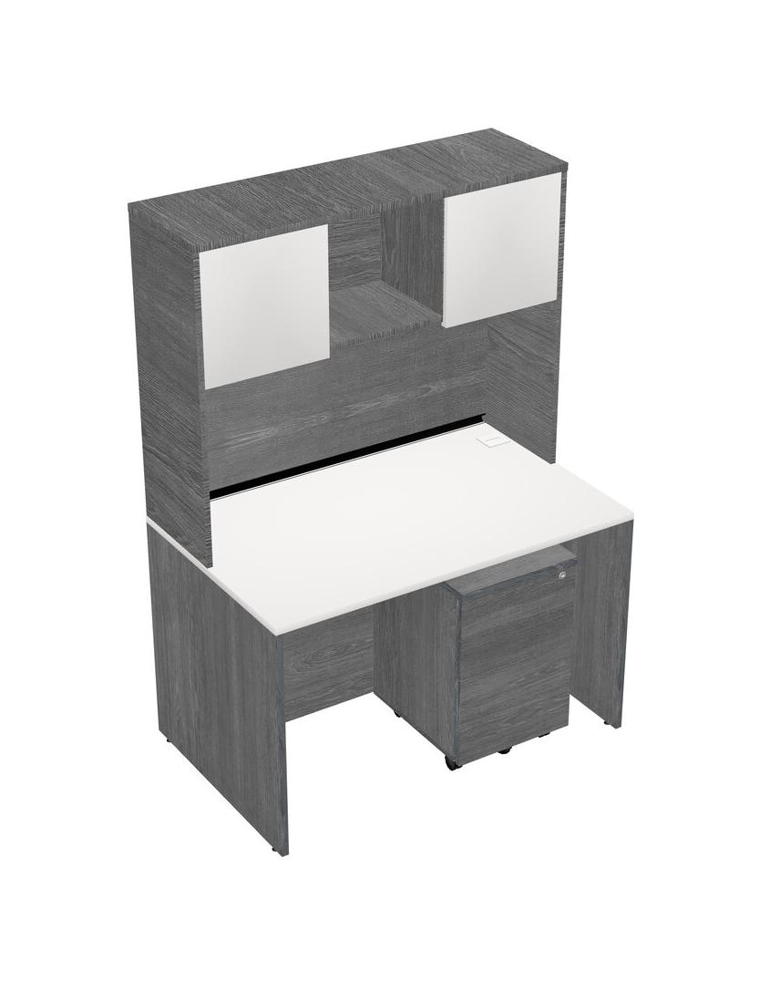 Bureau Rectangulaire Blanc Avec Tiroirs Mobiles En Bois Gris Et Clapier Gris