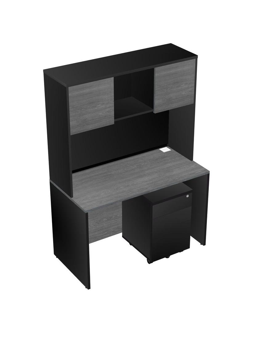 Bureau Rectangulaire Gris Avec Tiroirs Mobiles En Bois Noir Et Bahut Noir