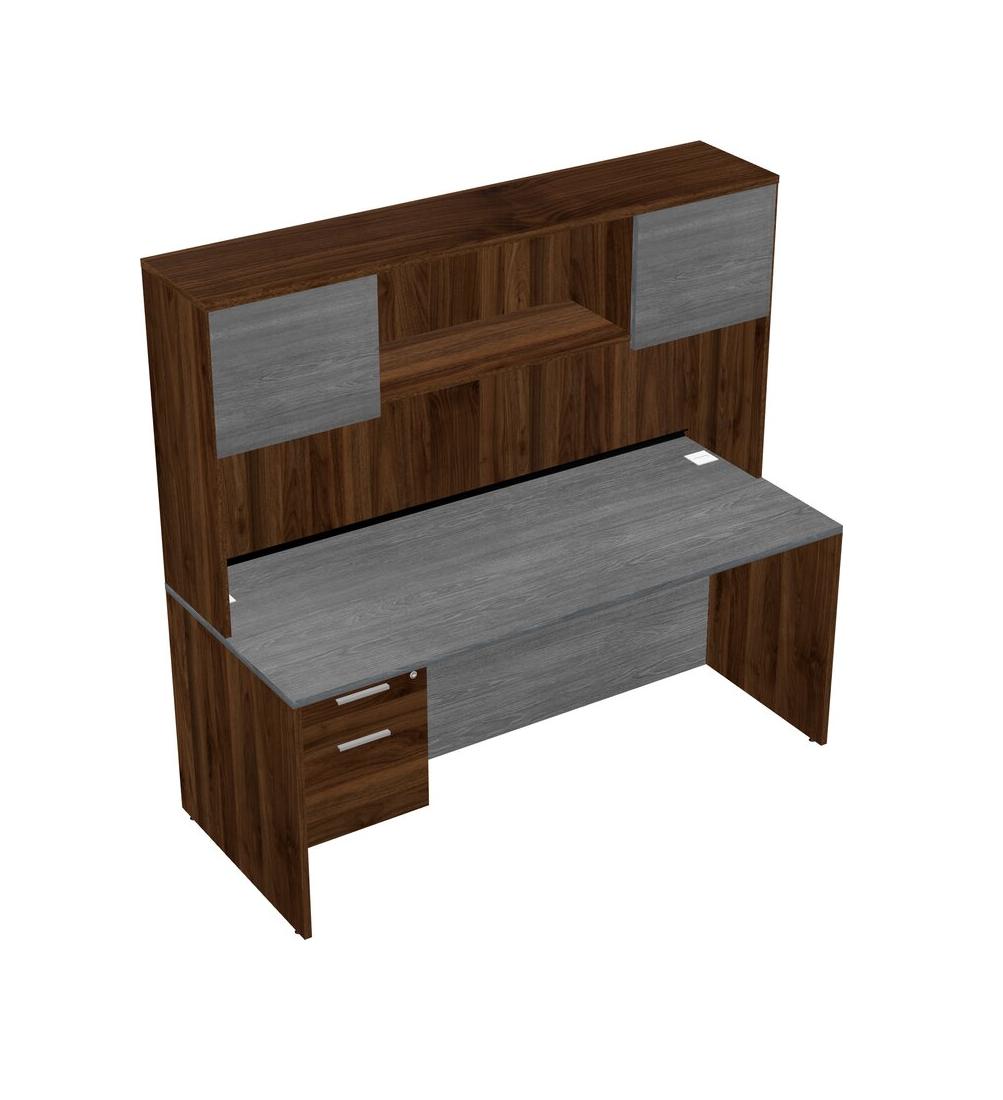 Bureau Rectangulaire Gris Avec Tiroirs Suspendus En Noyer Columbia Et Huche En Noyer Columbia