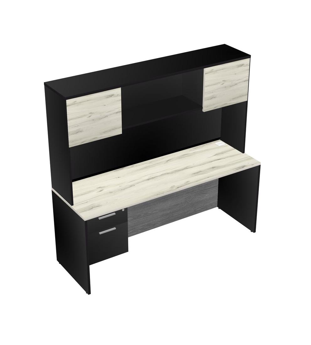 Bureau Rectangulaire Heinne Holz Avec Tiroirs Suspendus Noirs Et étagère Noire