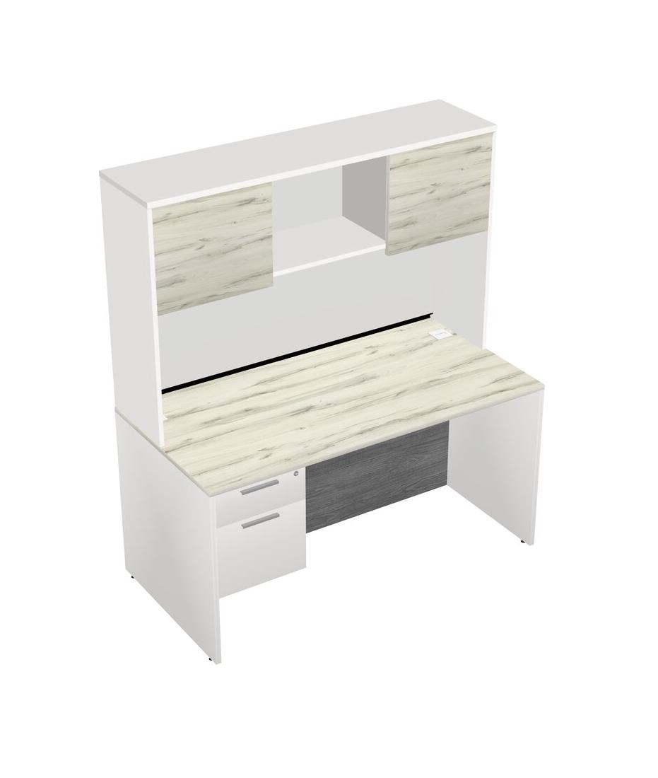 Bureau Rectangulaire Heinne Holz Avec Tiroirs Suspendus Blancs Et Bahut Blanc