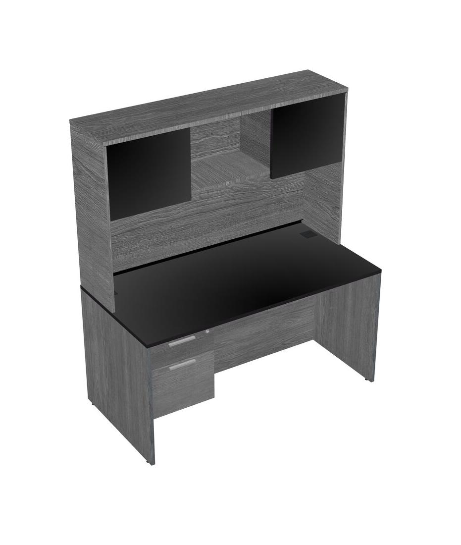 Bureau Rectangulaire Noir Avec Tiroirs Suspendus Gris Et Clapier Gris