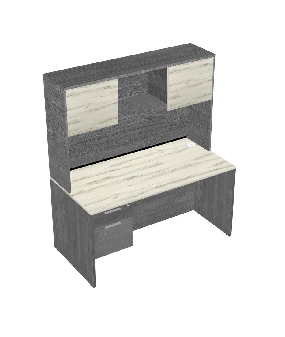Heinne Holz Rectangular Office Desk Plus Grey Hanging Drawers And Grey Hutch
