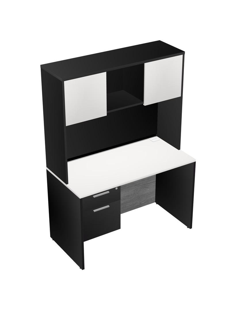 Bureau Rectangulaire Blanc Avec Tiroirs Suspendus Noirs Et Bahut Noir