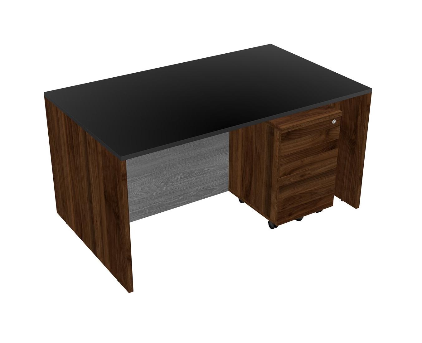 Black Rectangular Office Desk Plus Columbia Walnut Wooden Mobile Drawers