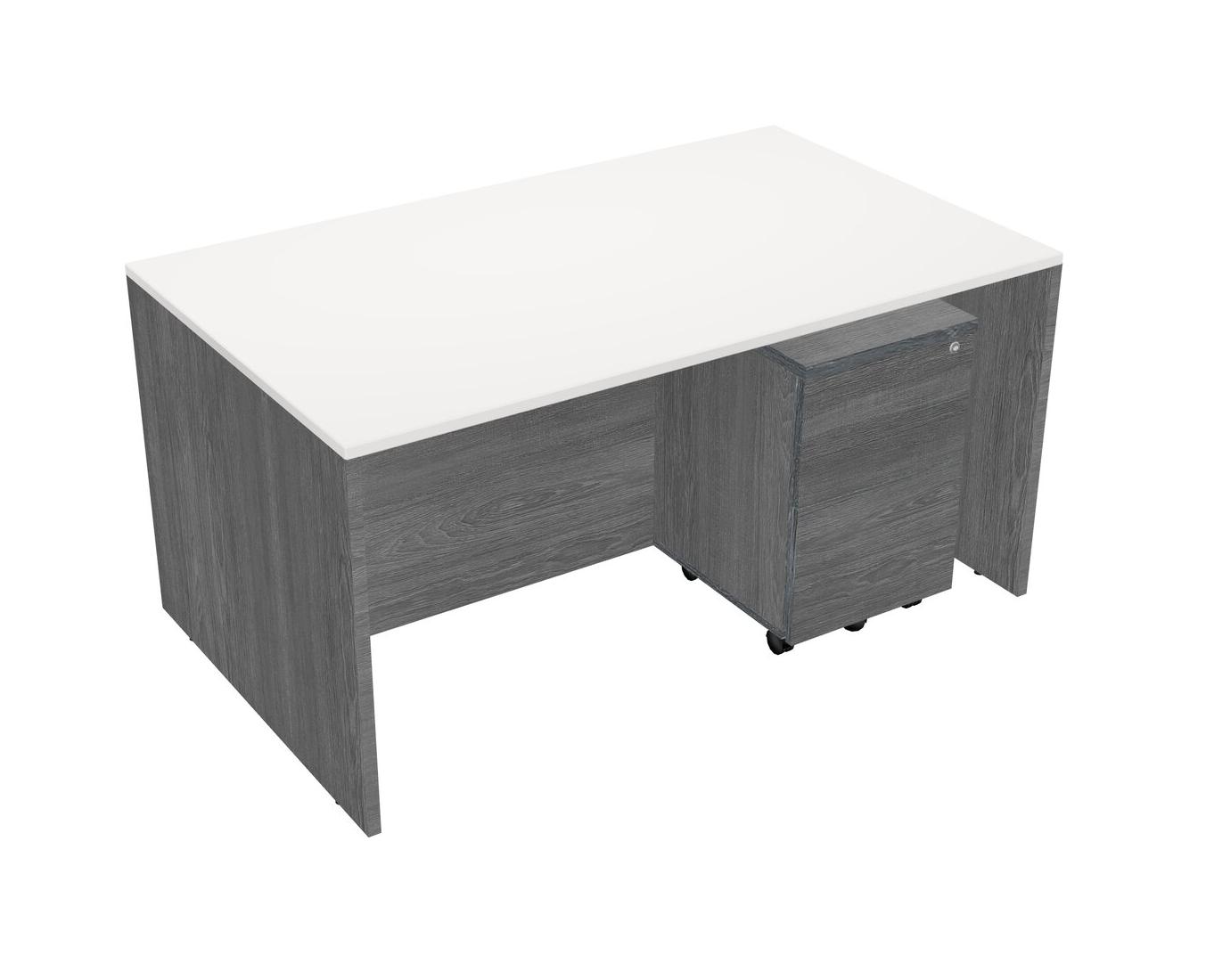 Bureau Rectangulaire Blanc Avec Tiroirs Mobiles En Bois Gris