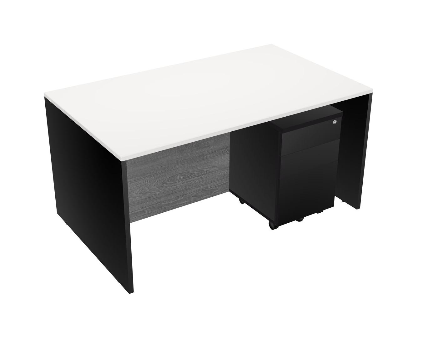 Bureau Rectangulaire Blanc Avec Tiroirs Mobiles En Bois Noir