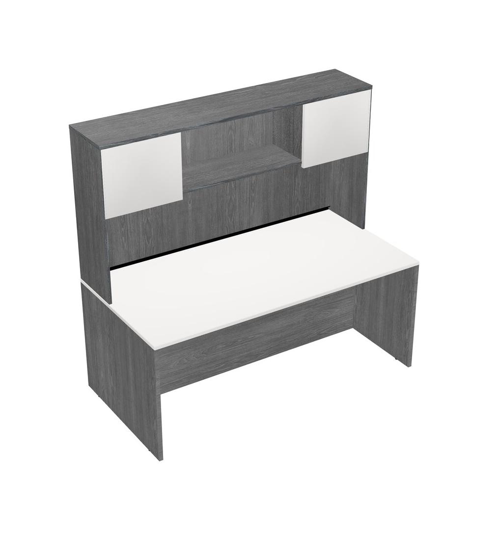 Bureau Rectangulaire Blanc Et Bahut Gris