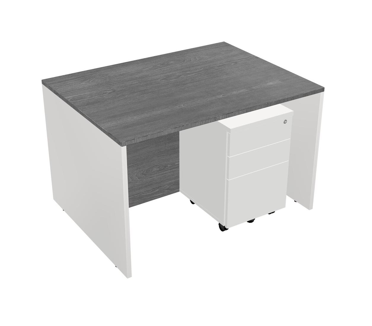Bureau Rectangulaire Gris Avec Tiroirs Mobiles En Bois Blanc