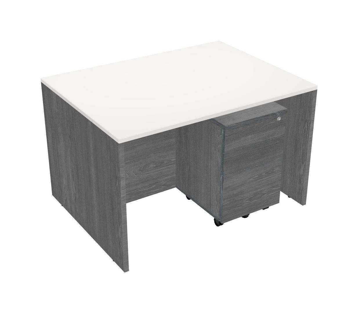 Bureau Rectangulaire Blanc Avec Tiroirs Mobiles En Bois Gris