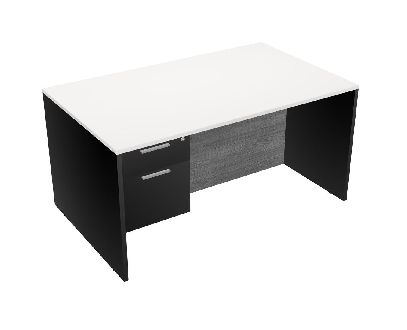 Bureau Rectangulaire Blanc Avec Tiroirs Suspendus Noirs