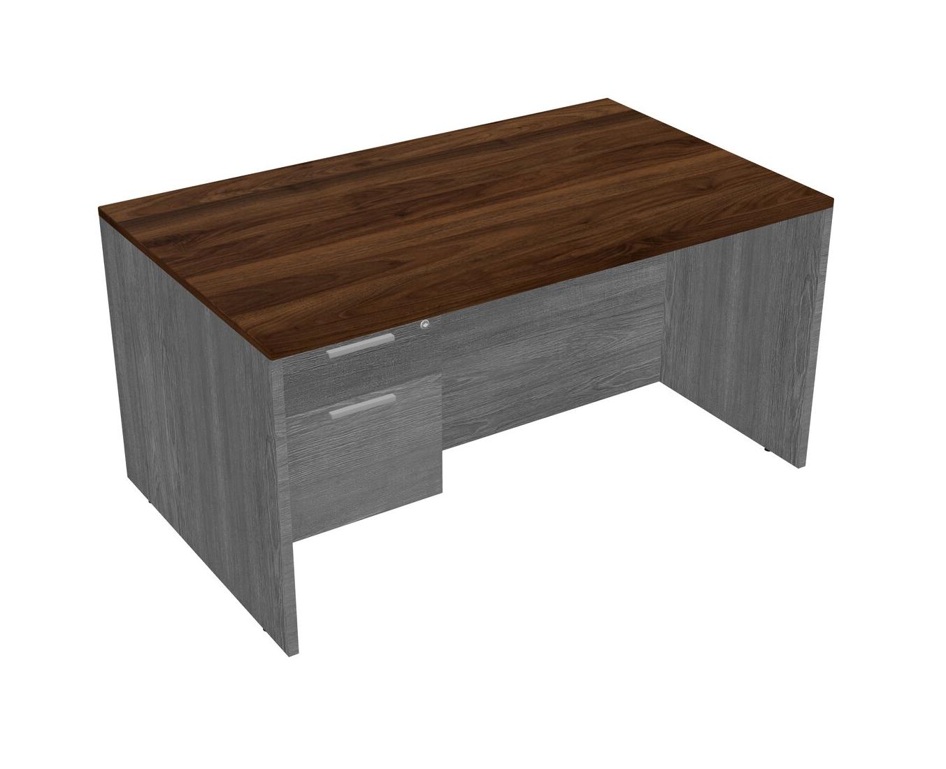 Bureau Rectangulaire En Noyer Columbia Avec Tiroirs Suspendus Gris