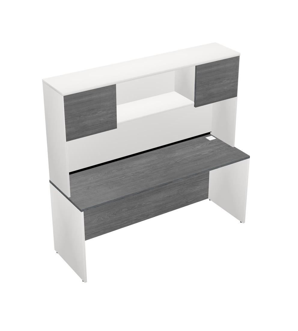 Bureau Rectangulaire Gris Et Bahut Blanc