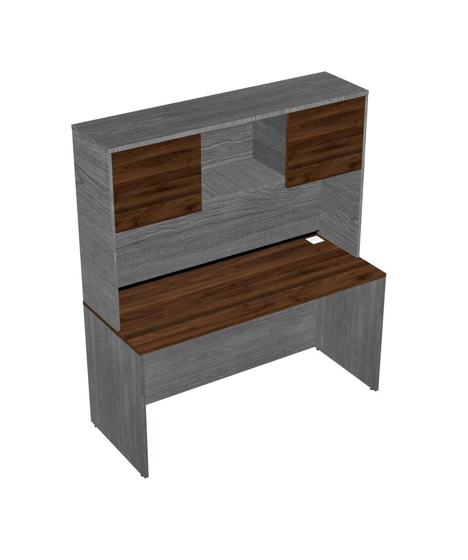 Columbia Walnut Rectangular Office Desk And Grey Hutch