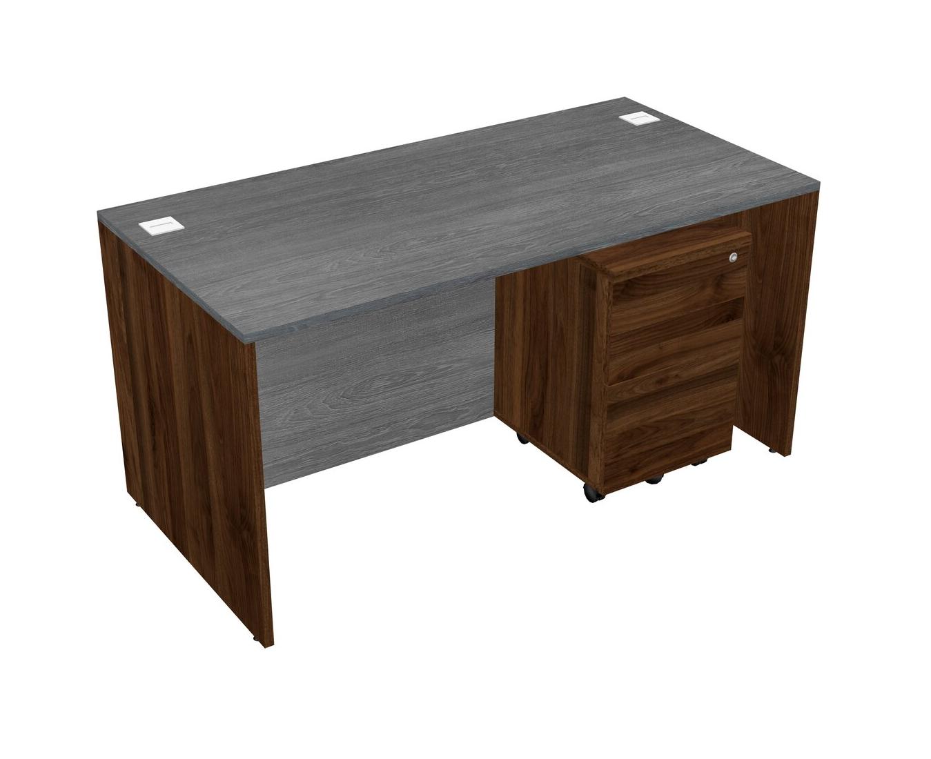 Bureau Rectangulaire Gris Avec Tiroirs Mobiles En Bois De Noyer Columbia