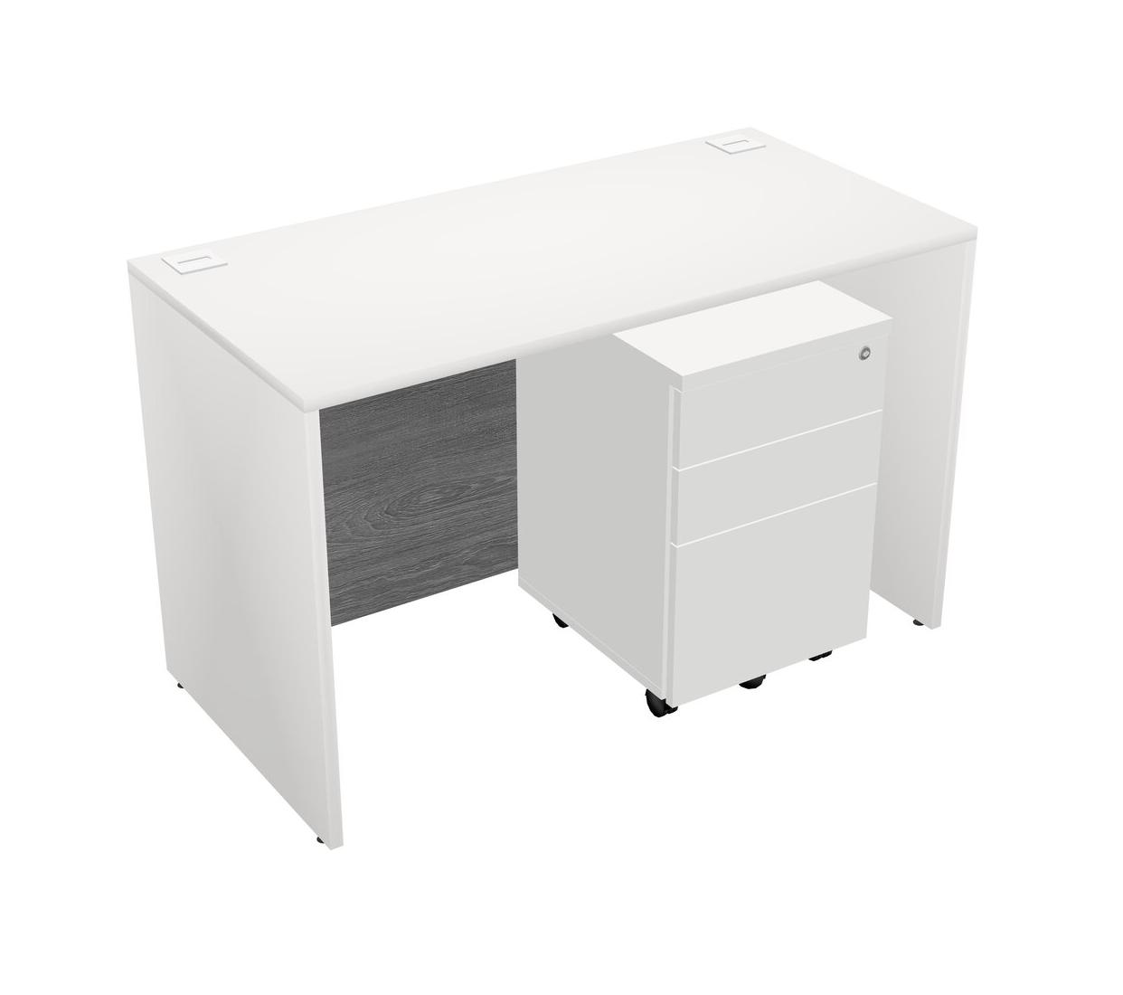 Bureau Rectangulaire Blanc Avec Tiroirs Mobiles En Bois Blanc
