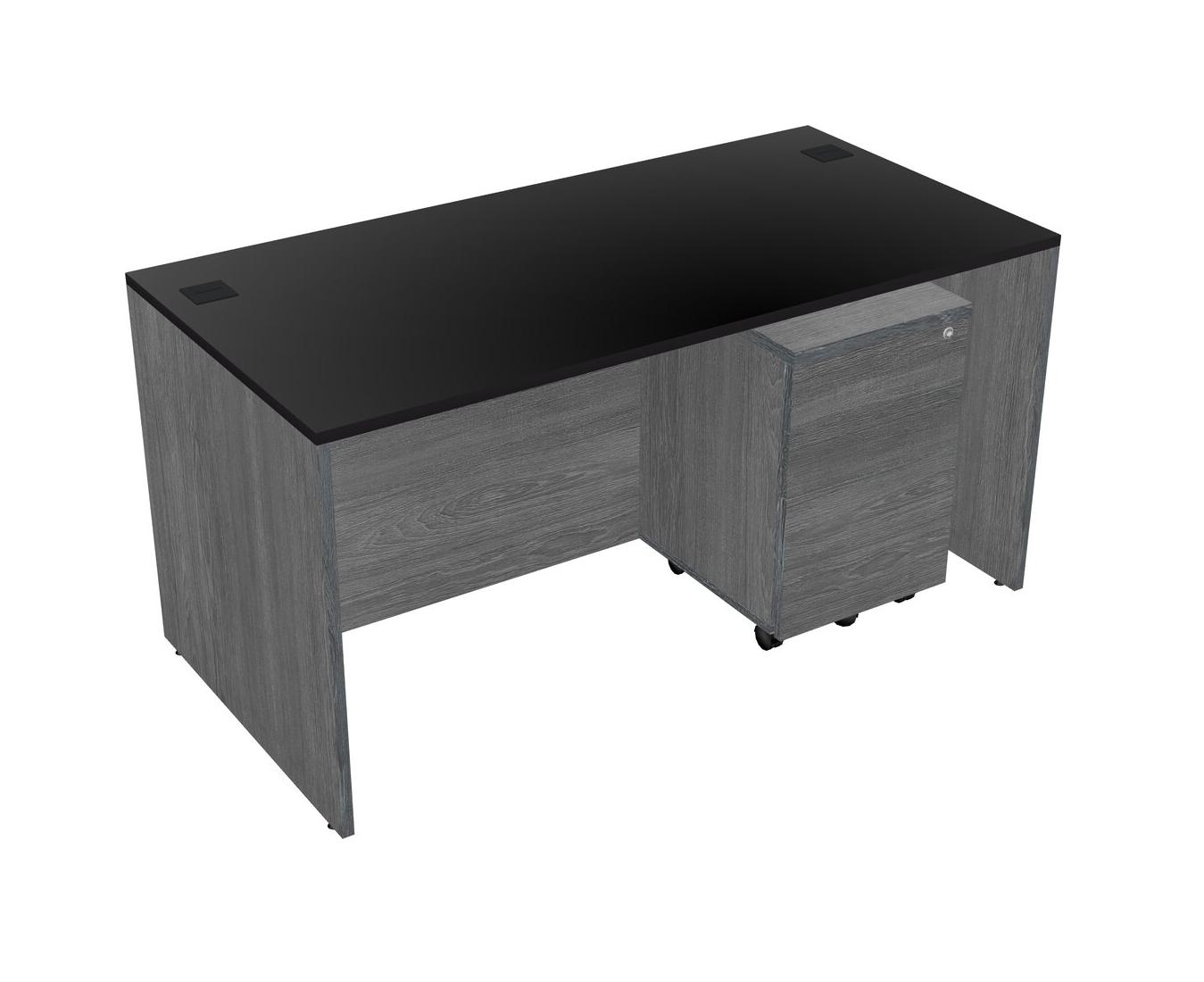 Bureau Rectangulaire Noir Avec Tiroirs Mobiles En Bois Gris