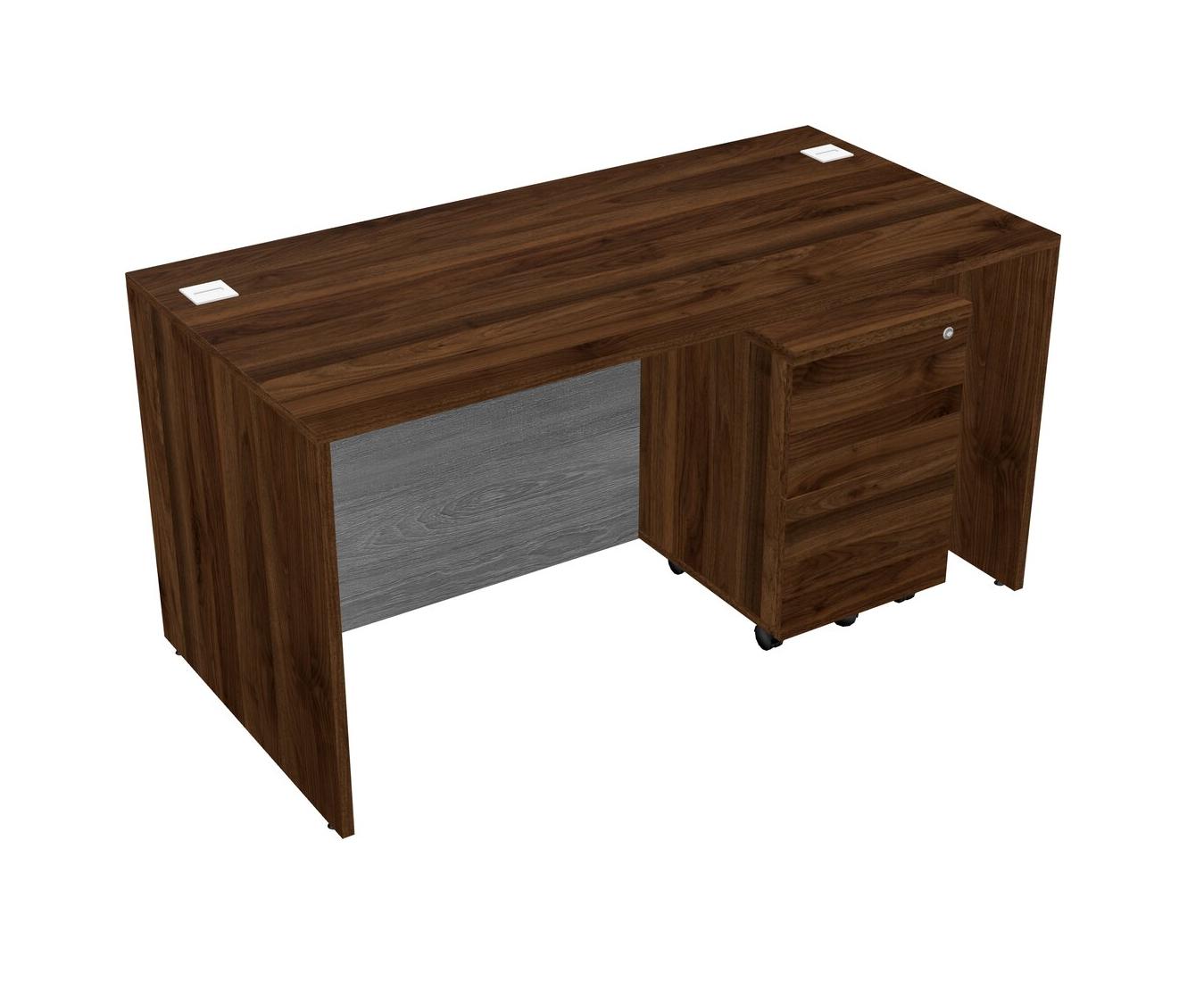 Bureau Rectangulaire En Noyer Columbia Avec Tiroirs Mobiles En Bois