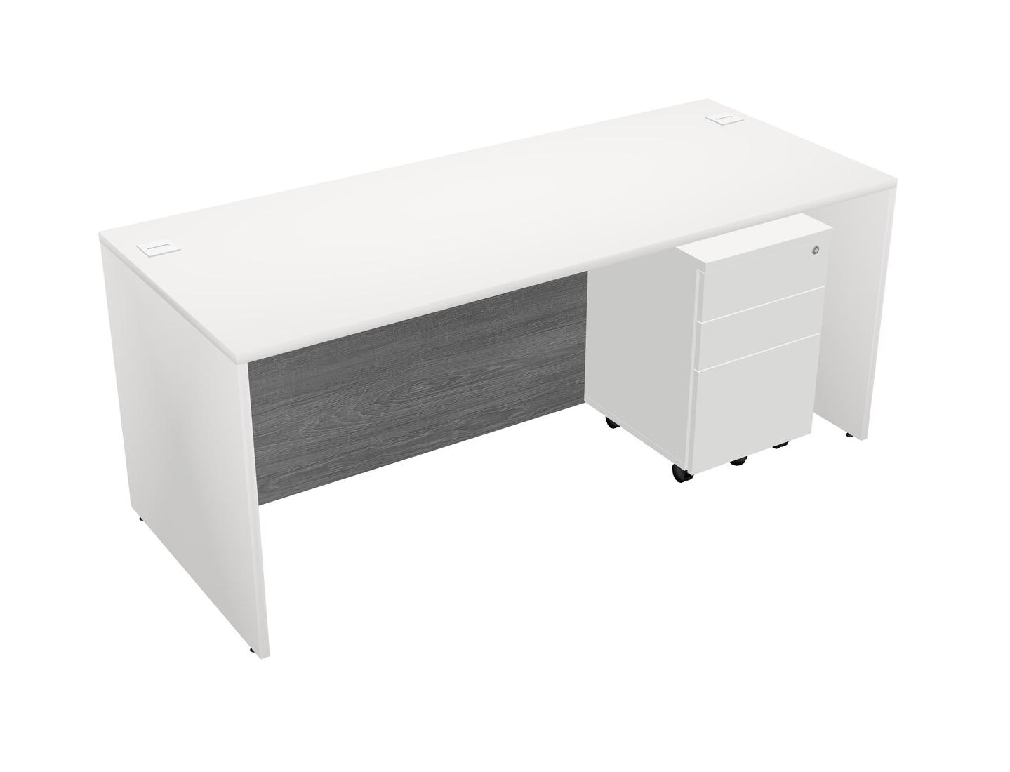 Bureau Rectangulaire Blanc Avec Tiroirs Mobiles En Bois Blanc