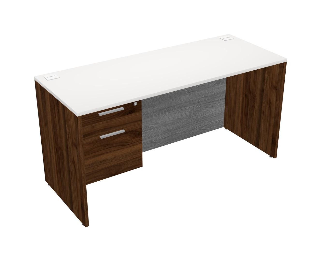 Bureau Rectangulaire Blanc Avec Tiroirs Suspendus En Noyer Columbia