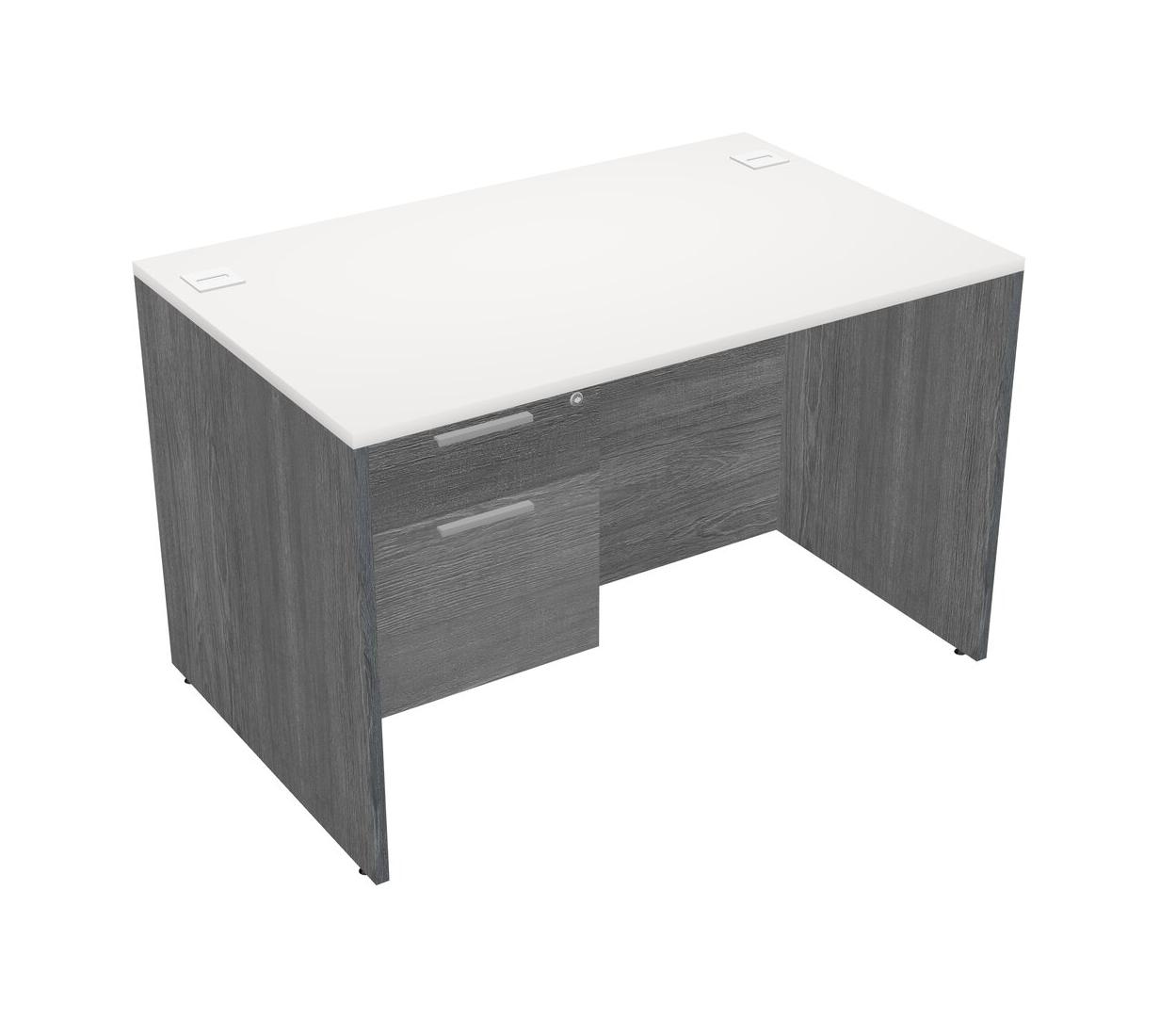 Bureau Rectangulaire Blanc Avec Tiroirs Suspendus Gris