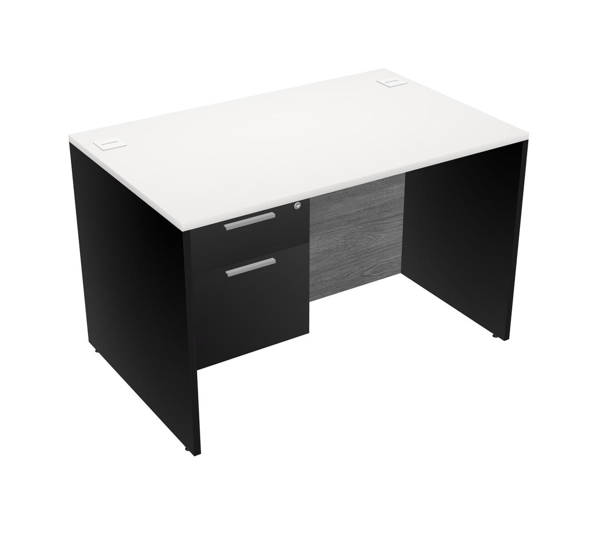 Bureau Rectangulaire Blanc Avec Tiroirs Suspendus Noirs