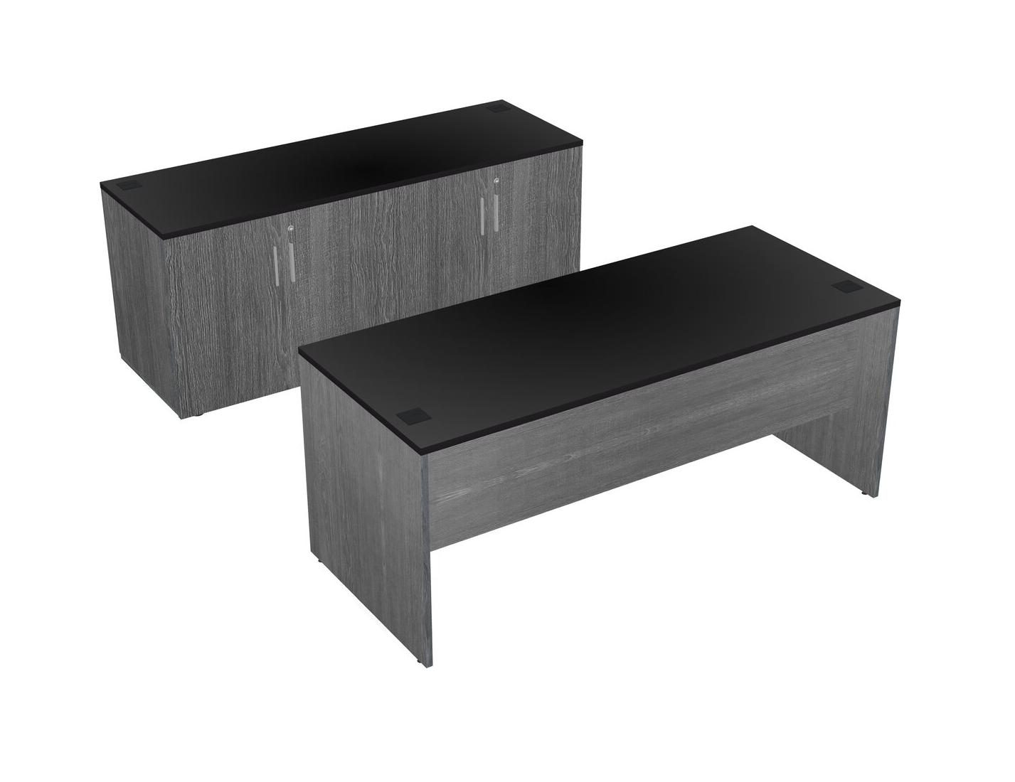 Bureau Parallèle Noir Avec Armoire De Rangement
