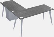 Bureau Gris En L Avec Tiroirs Mobiles En Métal