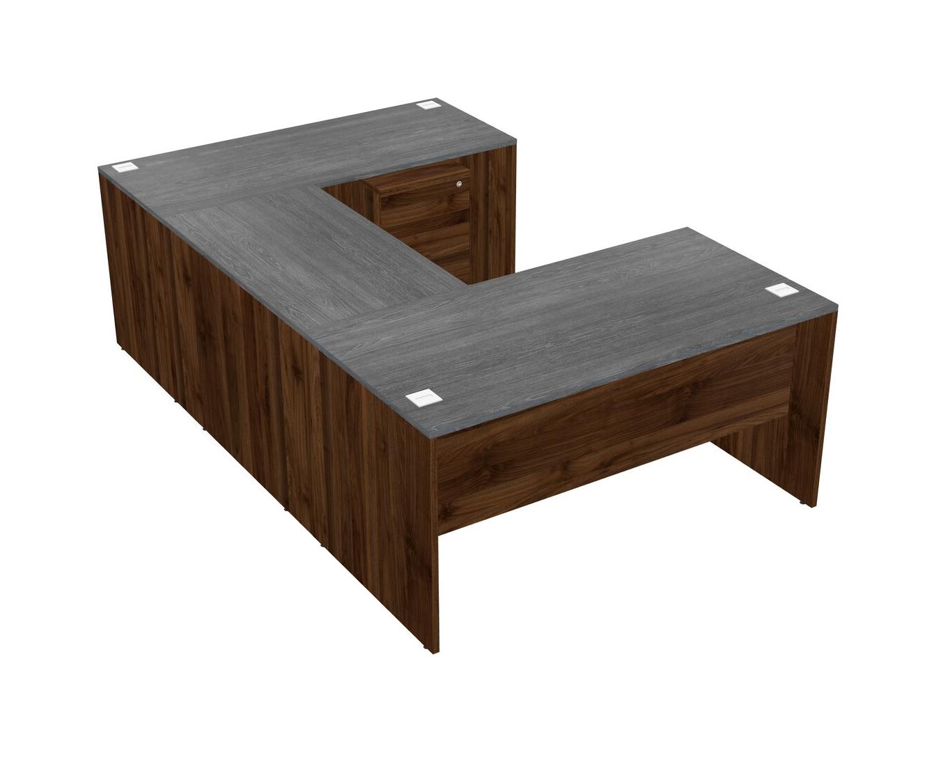 Bureau En U Avec Crédence Et Tiroirs Mobiles En Bois