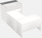 Comptoir D'accueil Modulaire Gris + Tiroirs Mobiles En Bois + Bureau Crédence
