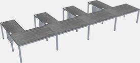Bureau Gris En L Avec Tiroirs Mobiles En Métal Pour 4 Personnes