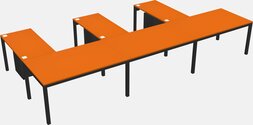 Bureau Orange En L Avec Tiroirs Mobiles En Métal Pour 3 Personnes