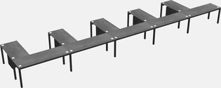 Bureau Gris En L Avec Tiroirs Mobiles En Métal Pour 5 Personnes