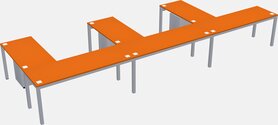 Bureau Orange En L Avec Tiroirs Mobiles En Métal Pour 3 Personnes
