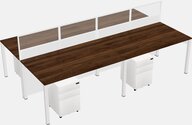 Système De Panneaux De Bureau Rectangulaire Partagé En Noyer Columbia Avec Tiroirs Mobiles Pour 4 Personnes