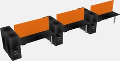 Bureaux électriques Noirs à Hauteur Réglable Et à Double Moteur Avec Armoires Latérales Pour 6 Personnes