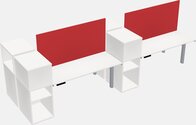 Bureaux électriques Blancs Partagés à Hauteur Réglable Avec Armoires Latérales Pour 4 Personnes