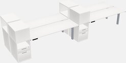 Bureaux électriques Blancs Partagés à Hauteur Réglable Avec Armoires Latérales Pour 4 Personnes