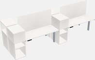 Bureaux électriques Blancs Partagés à Hauteur Réglable Avec Armoires Latérales Pour 4 Personnes