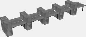 Bureaux électriques Gris Partagés à Hauteur Réglable Avec Armoires Latérales Pour 10 Personnes