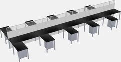 Système De Panneaux De Bureau Partagés Noirs En Forme De L Pour 10 Personnes