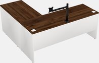 Bureau En L En Noyer Columbia + Bras D'écran Noir (bras Simple)