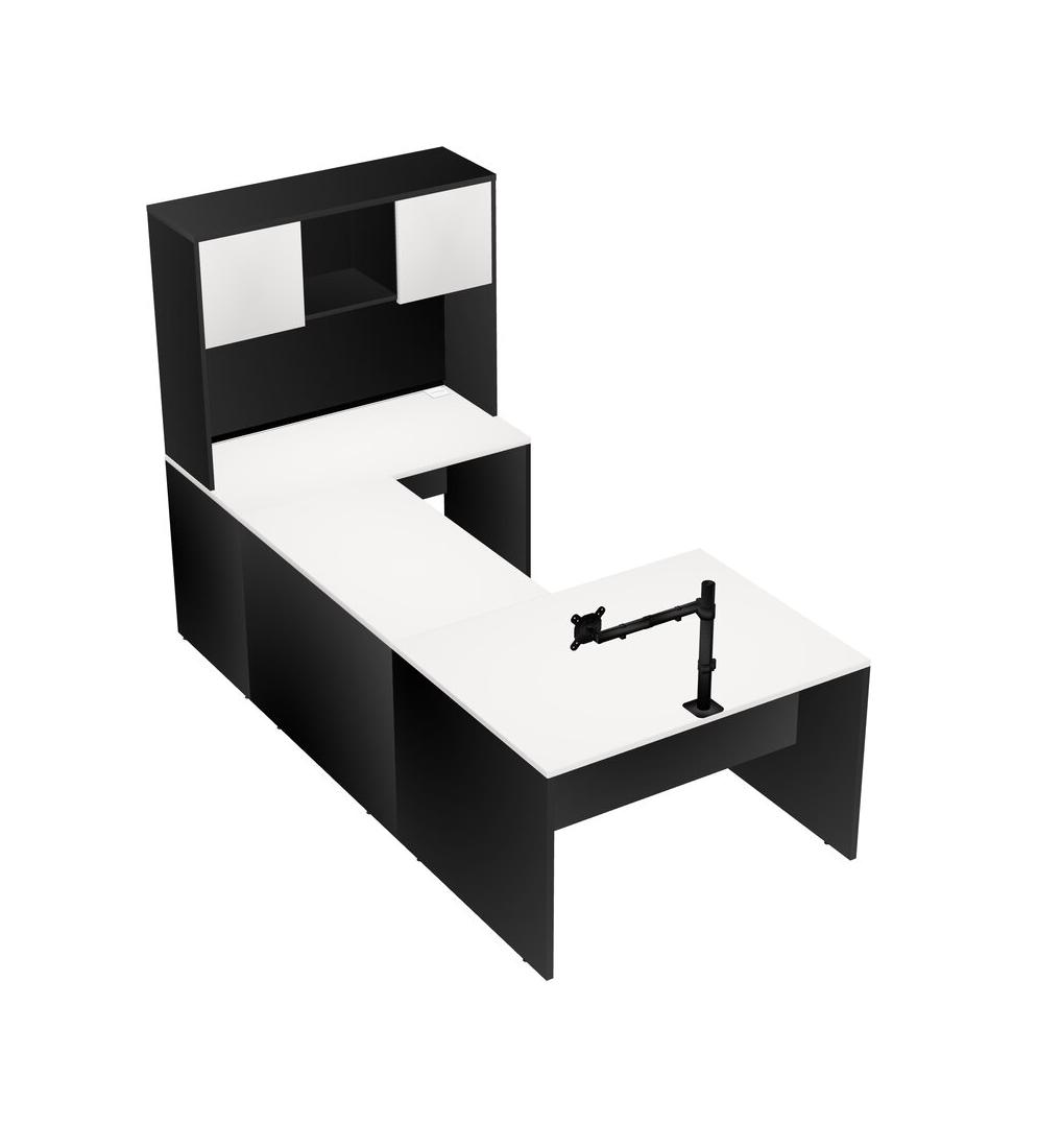 Bureau En U, Crédence, Bureau + Huche + Bras Pour écran (bras Simple)