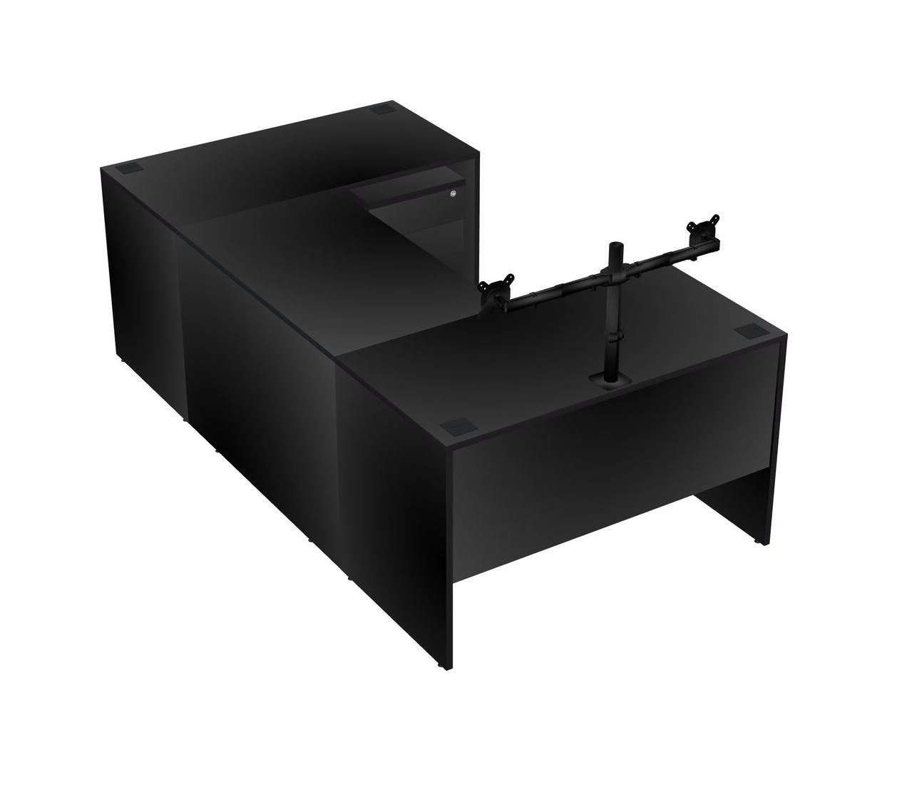 Bureau En U, Crédence, Tiroirs Mobiles En Bois, Bras Pour écran (double Bras)