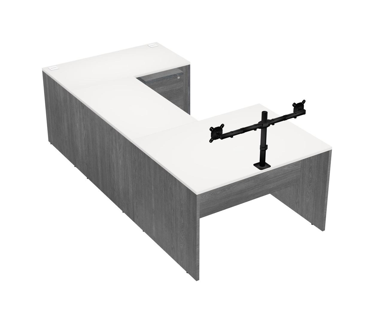 Bureau En U, Crédence, Tiroirs Mobiles En Bois, Bras Pour écran (double Bras)
