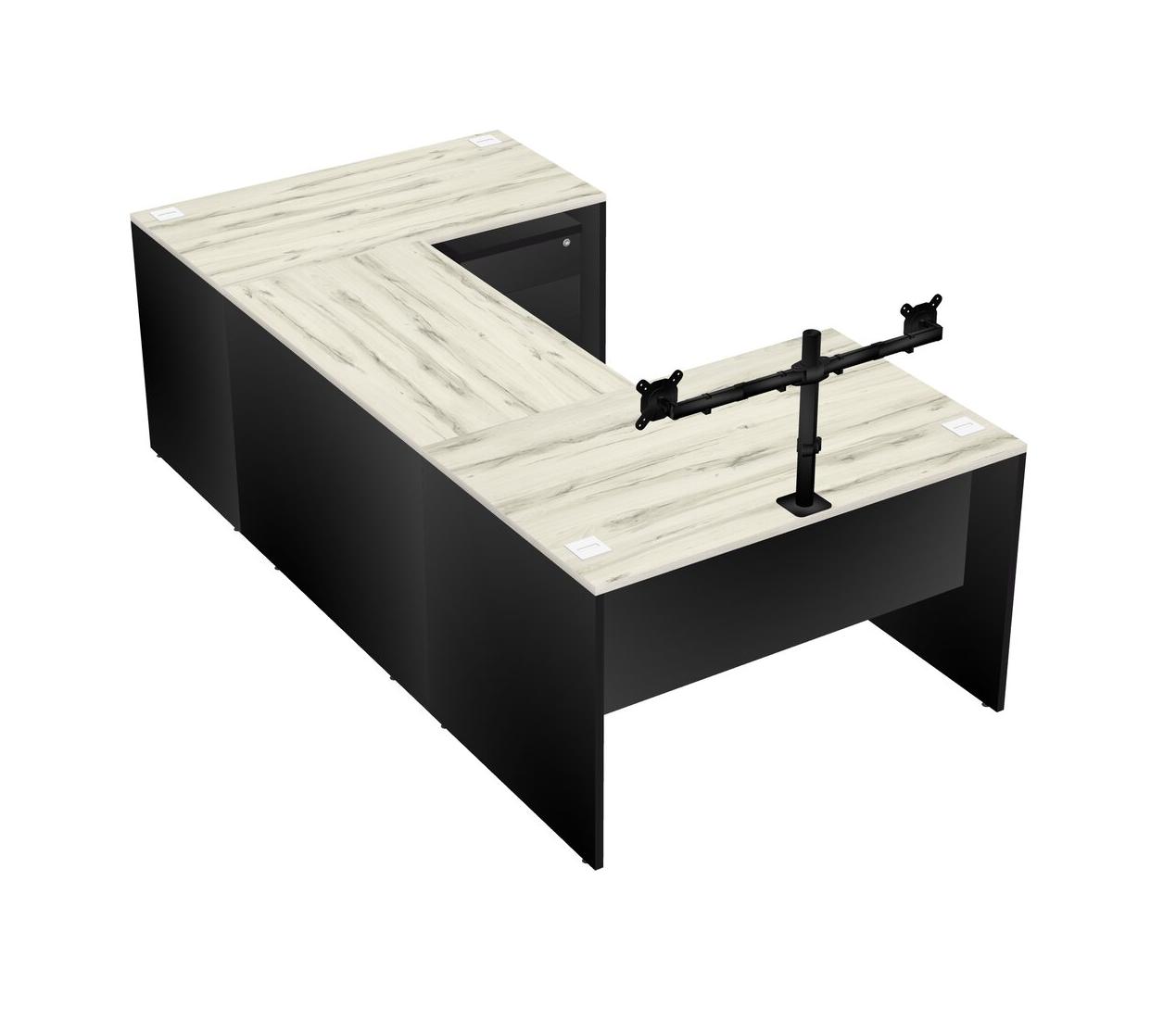 Bureau En U, Crédence, Tiroirs Mobiles En Bois, Bras Pour écran (double Bras)