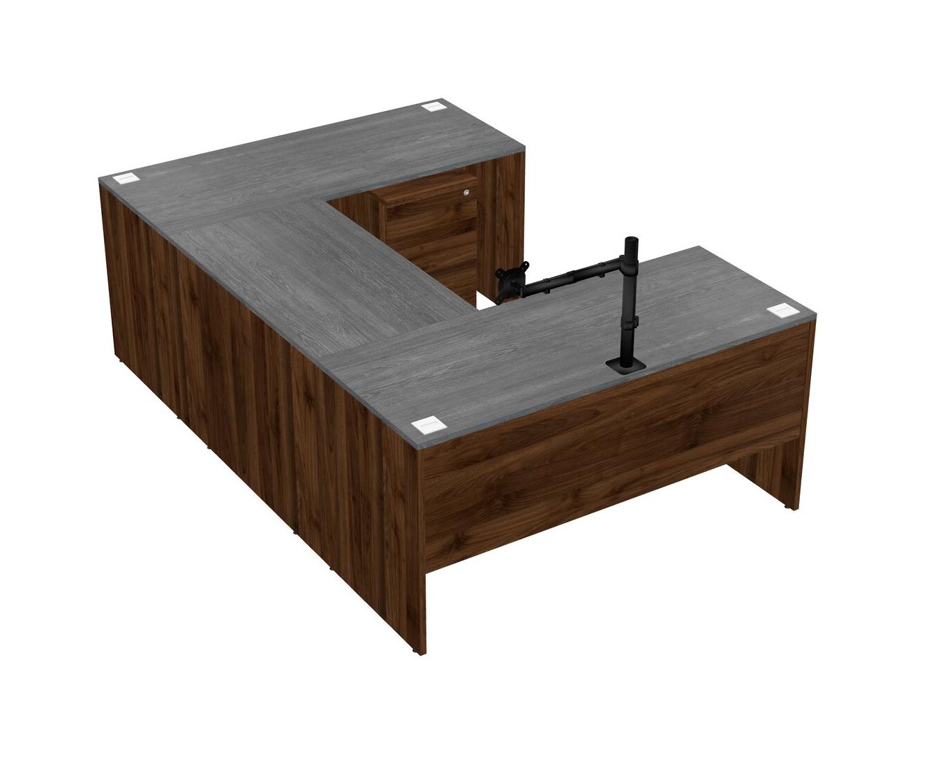 Bureau En U, Crédence, Tiroirs Mobiles En Bois, Bras D'écran (bras Simple)