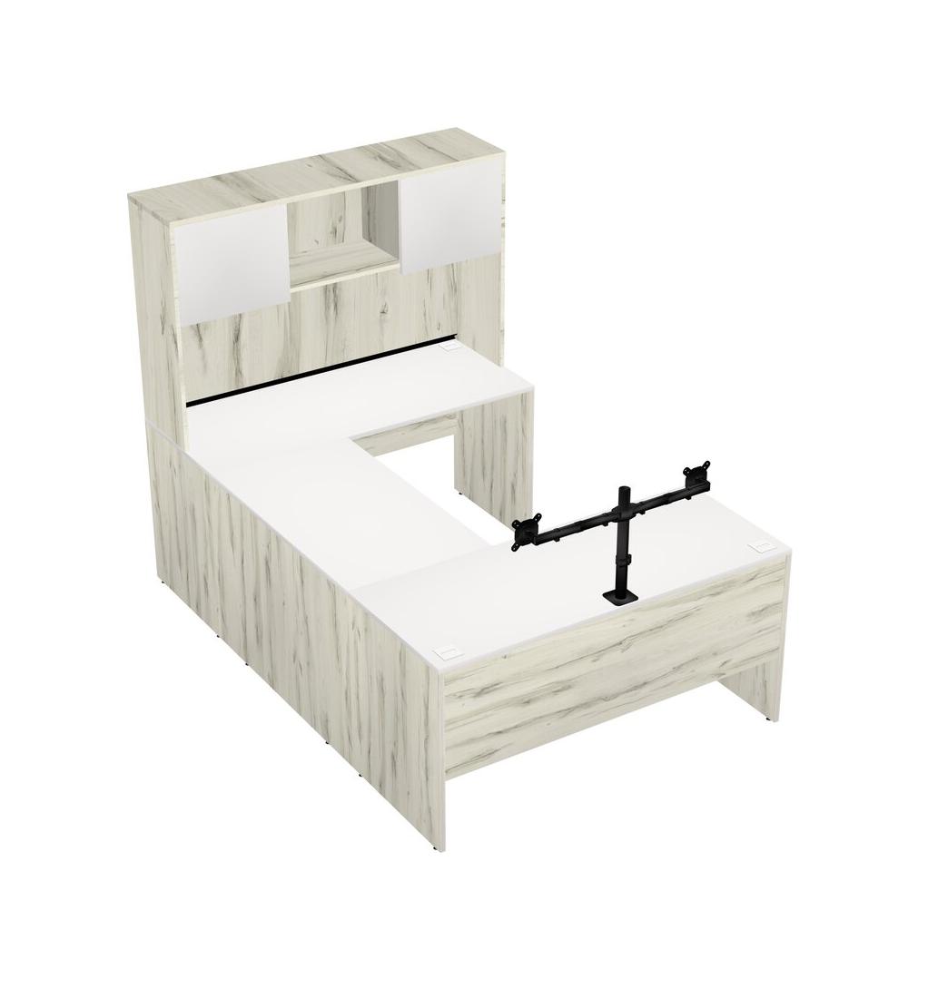 Bureau En U, Crédence, Bureau + Huche + Bras Pour écran (bras Doubles)