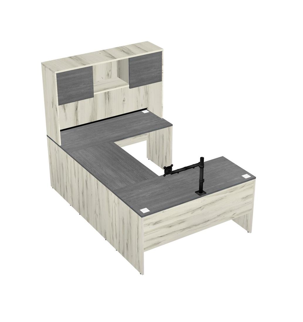 Bureau En U, Crédence, Bureau + Huche + Bras Pour écran (bras Simple)