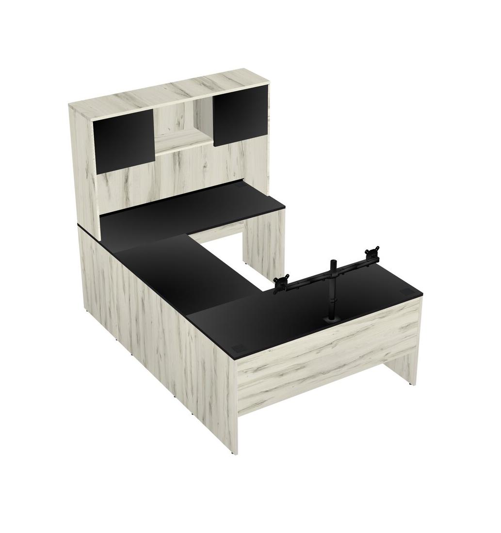 Bureau En U, Crédence, Bureau + Huche + Bras Pour écran (bras Doubles)